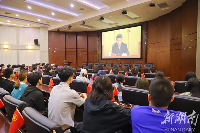 4月30日上午10时30分,湖南中医药大学校团委及各二级学院集中组织青年学生积极收看纪念五四运动100周年大会。青年学生们都观看得十分认真。(张觅 张斯皓 摄影报道)
