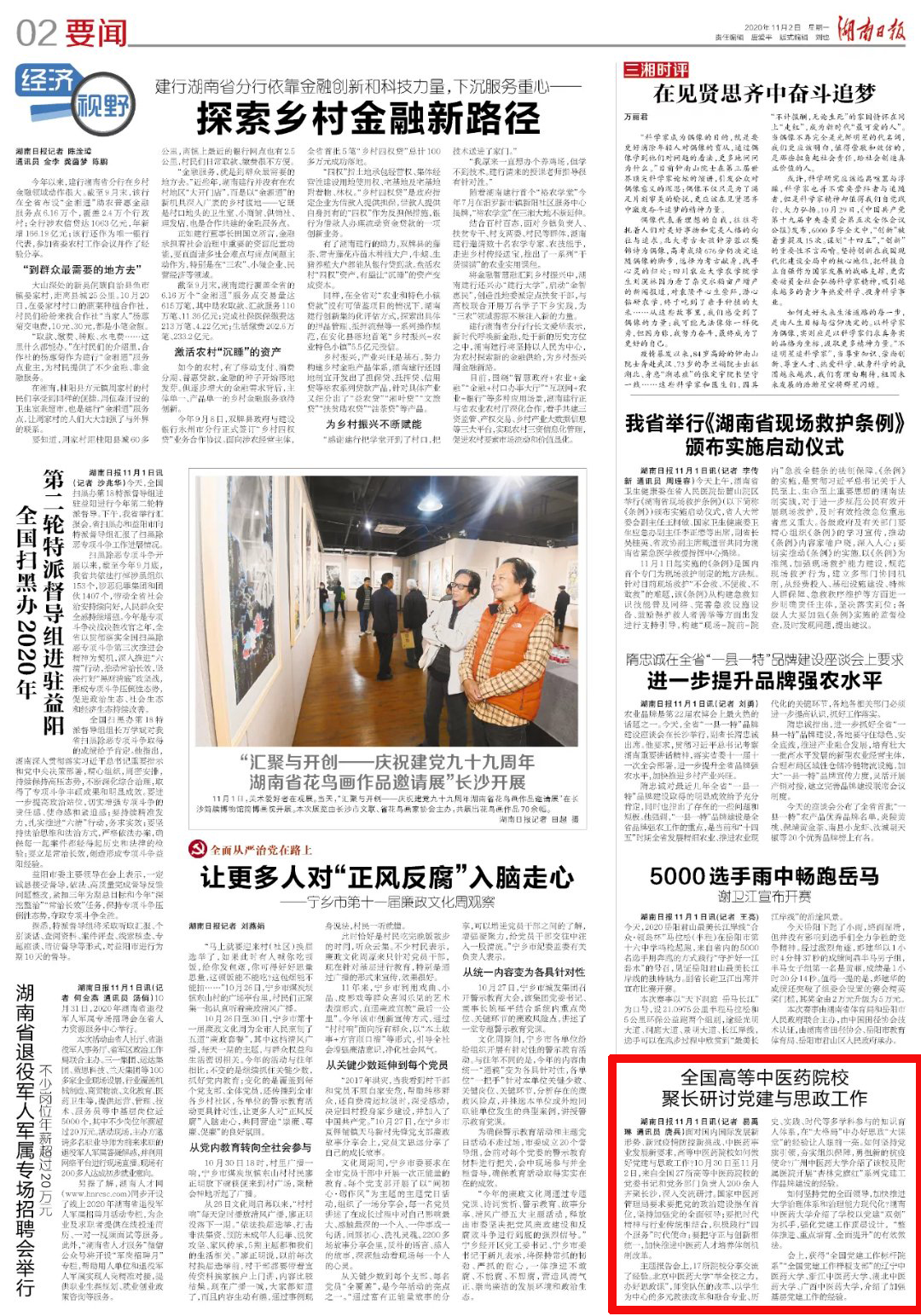 湖南日报11月1日讯(记者 易禹琳 通讯员 唐兵)面对国内国际发展新形势、新冠疫情防控新挑战、中医药事业发展新要求,高等中医药院校如何做好党建与思政工作?10月30日至11月2日,来自全国27所高等中医药院校的党委书记和党务部门负责人200余人齐聚长沙,深入交流研讨。国家中医药管理局要求要把党的政治建设摆在首位,坚持加强党的全面领导;要把时代精神与行业传统相结合,积极践行“四个服务”时代使命;要把守正与创新相统一,加快推进中医药人才培养体制机制改革。