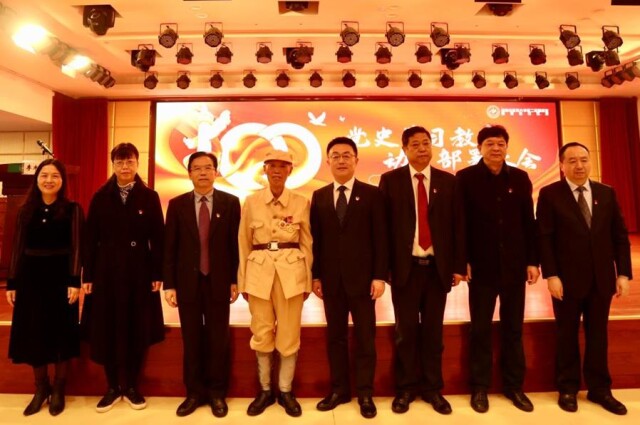 在党史学习教育动员会上,谭孝炳身穿绿色军装、胸前佩戴着三等军功章,与全体参会党员观看了抗美援朝历史短片《鉴往知来纪念馆中的抗美援朝历史》。通过一份手稿、一篇通讯、一封绝笔信和一面锦旗的故事,谭孝炳与全体参会党员共同回忆了那段难以忘怀的历史,深切缅怀为中国人民解放事业和社会主义建设事业英勇献身的人民军队革命烈士们。