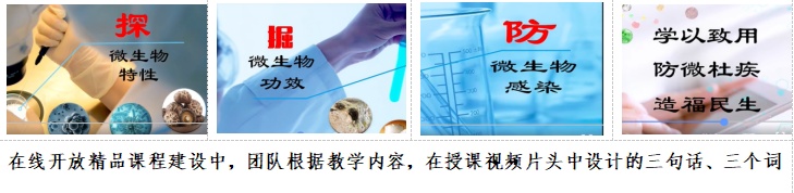 “探”微生物特性,“掘”微生物功能,“防”微生物感染,“学以致用,防微杜疾,造福民生”。教学团队通过精心凝练,在网络育人平台视频教学中通过三个词、三句话进行价值观引导,深受学生好评。该团队建设的国家级在线开放精品课程在校内乃至全国医药院校已推广2年半中,选课人数四万余人,选课学校84所,2020年秋冬学期获评智慧树网“本科高校专业课TOP100”。2019年,团队依托课程教学实践与改革申报的“立德树人”视阈下《免疫学基础与病原生物学》“课程思政”改革与实践获湖南省高等教育省级教学成果二等奖;2016年,团队坚持8年时间的“以提升创新能力为导向的课程改革实践”获湖南省高等教育省级教学成果三等奖;2021年团队先后获批湖南省、教育部课程思政示范课程、教学名师和团队。