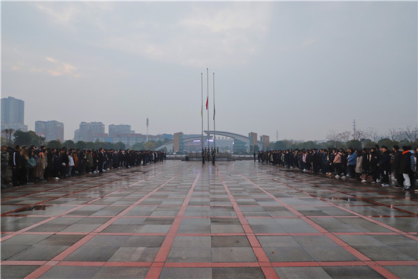 12月13日,第五个南京大屠杀死难者国家公祭日,我校于含浦校区南广场举行了升国旗、下半旗默哀仪式,五星红旗在寒风中飒飒升起,鸣笛声响彻心扉,数千余名师生自发参加活动,为81年前南京大屠杀中遇难的30万同胞默哀。