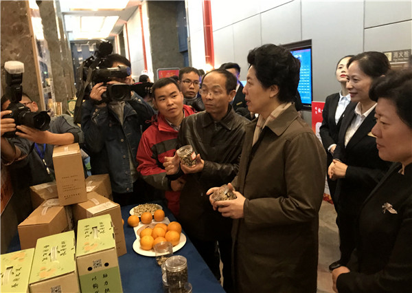 乌兰、吴桂英亲临我校扶贫成果展台,廖菁向乌兰等省领导介绍了我校的产业帮扶项目及成果,廖菁说:我校立足自身优势,结合怀化地区原有的橙子种植优势,研究丢弃的幼果,变废为宝,开发出优质枳实,当年就取得了良好经济效益,我们将力争打造中药材优质品牌的目标,孕育出怀化亿元产业的新希望。乌兰连说:亿元产业,好!好!好!并鼓励我校要在中药材产业上做出更多更大的成绩。在其后的现场大会上,乌兰赞赏了我校及全省的中药材种植和加工产业发展,希望高校能够抓实驻村帮扶,强化激励措施,总结推广经验,打造高校服务脱贫攻坚的湖南品牌。