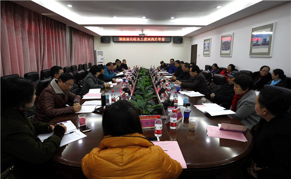 11月23日,湖南省高校关工委河西片年会在我校召开,来自我省高校关工委河西片的12所高校关工委负责人参加会议,中南大学关工委(片长单位)常务副主任龚竹青主持会议,我校(院)党委副书记、校关工委主任肖小芹参加会议并致辞。