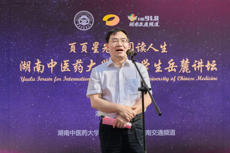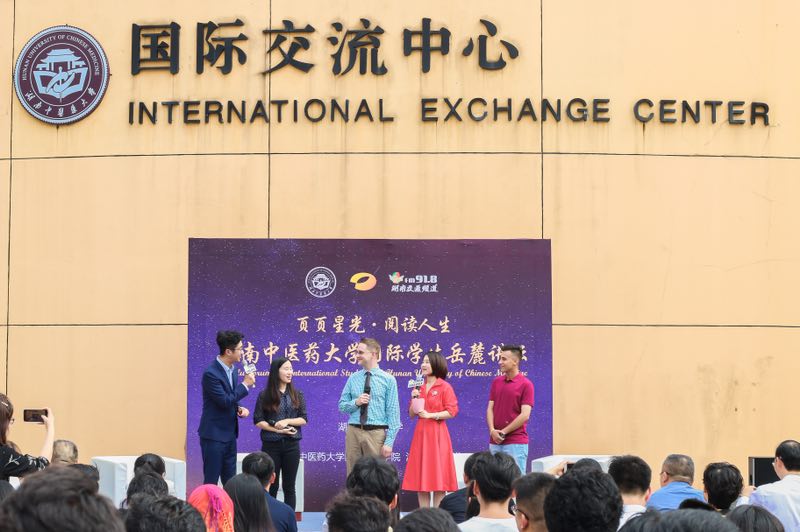 5月27日下午,“页页星光·阅读人生”湖南中医药大学国际教育学院首期“岳麓讲坛”开讲。大学校(院)党委书记秦裕辉、副校长姜怡邓、宣传(统战)部部长焦珞珈、新锐青年作家汪洁洋、湖南卫视主播志威及100多名中外学生参加了此次讲坛,共同分享读书经历与求学成长历程,纵论青春、纵论梦想。
