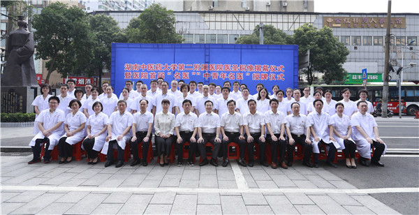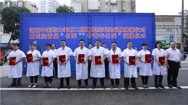 7月2日上午,我校第二附属医院首届“医圣文化节”火热开幕。湖湘仲景文化沙龙首期公益讲座正式开班,医圣张仲景铜像揭幕仪式暨医院首届“名医”“中青年名医”授牌仪式同步举行。校(院)党委书记秦裕辉、副校长何清湖、湖南省中医药管理局副局长肖文明,附二院领导班子全体成员、护士长以上中层干部、医务与职工代表百余人参加仪式。