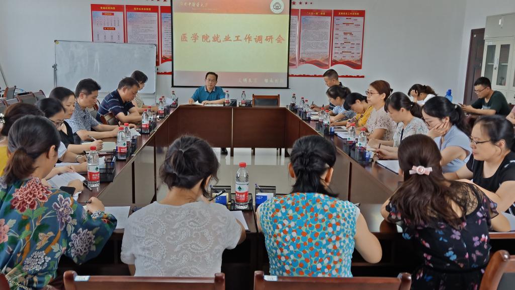 6月28日下午,副校长葛金文前往医学院对就业工作作专题调研,医学院、招生就业处负责人及医学院各教研室主任参加座谈会。