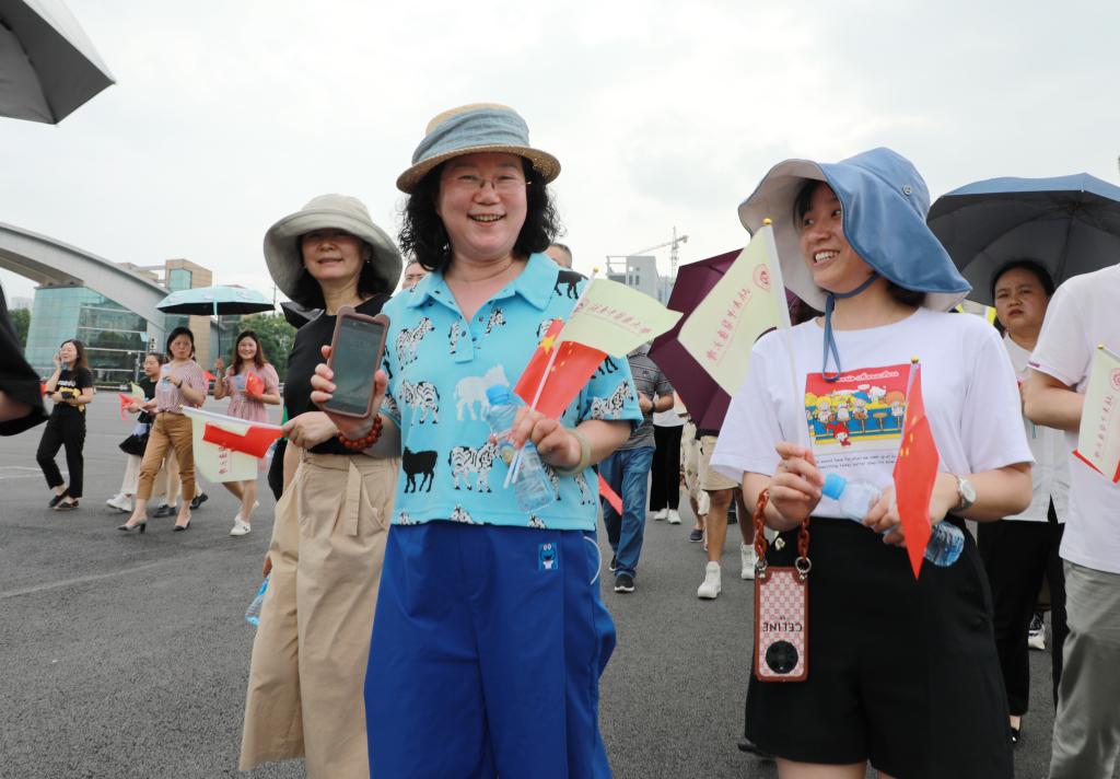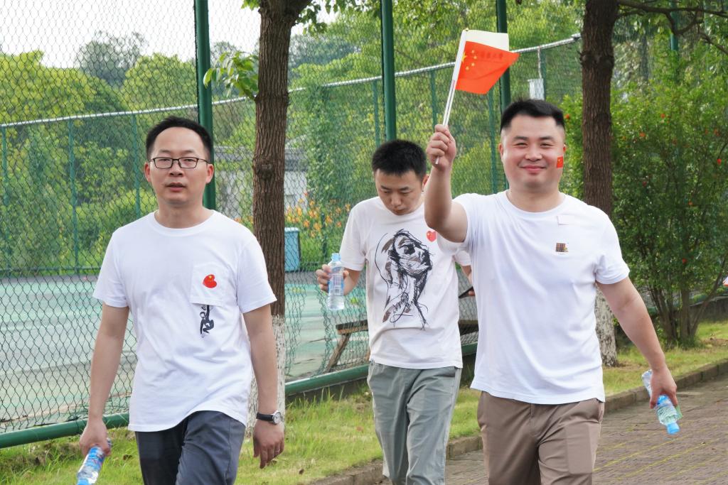 烈日抵挡不住参赛者们的热情,健步过程中,队员们手执国旗、校旗进行拉歌,一路欢声笑语,气氛热烈。