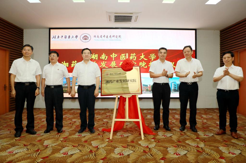 与会领导共同为湘药产业发展研究院揭牌。